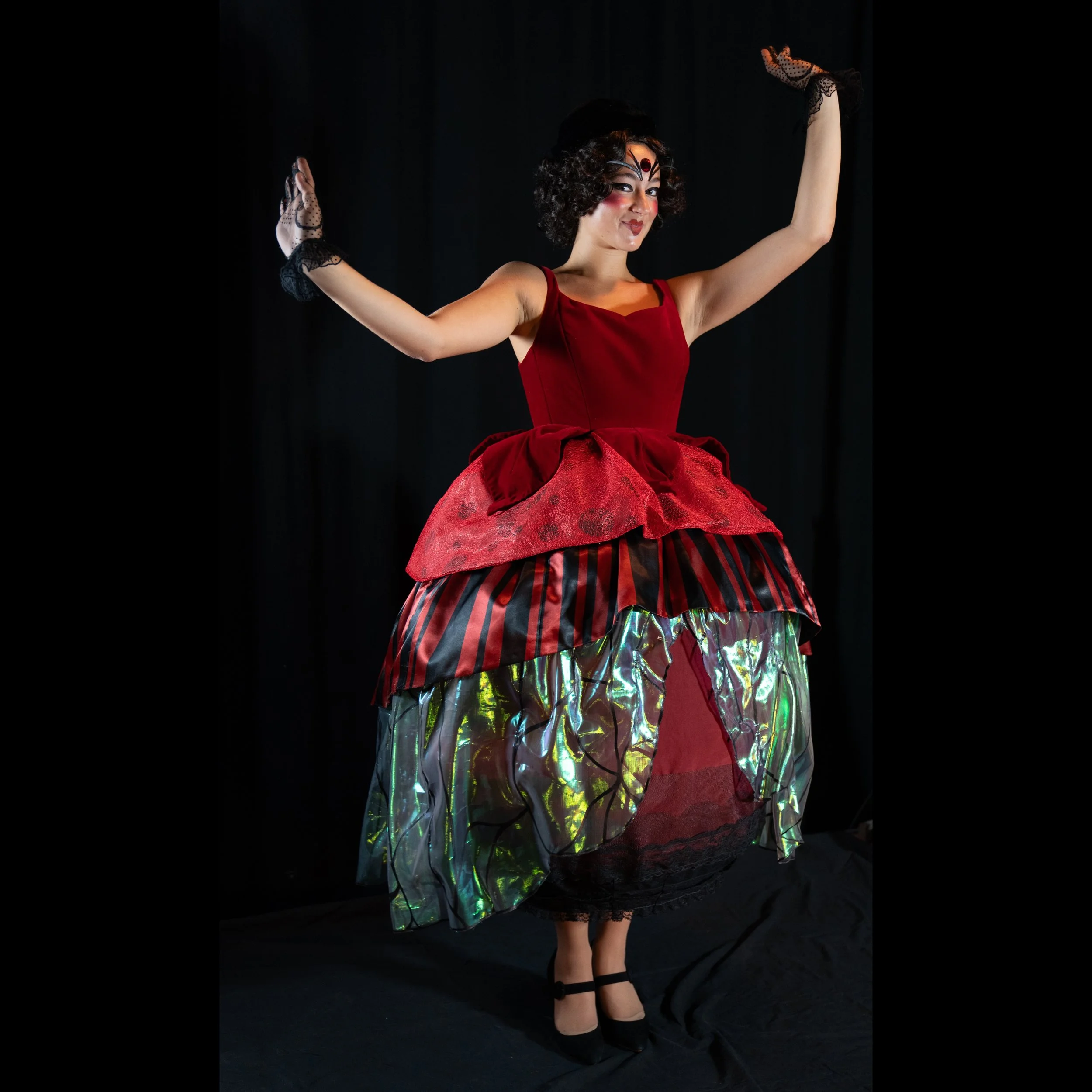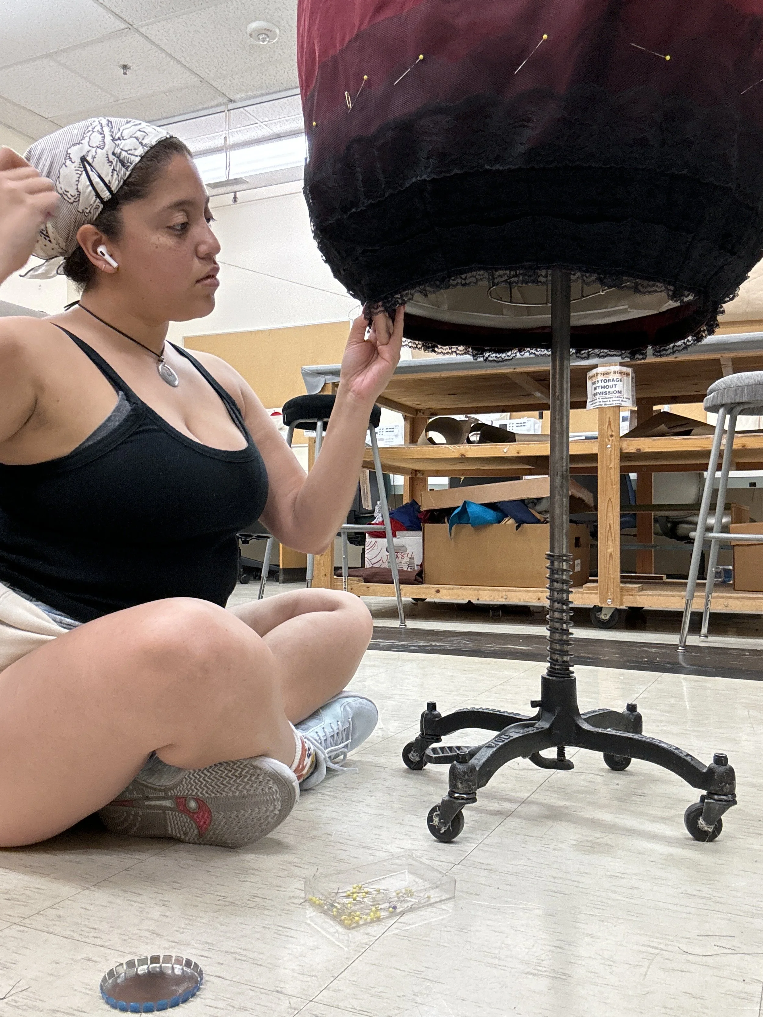 Many of the costumes in this production have integrated lighting elements to enhance the show's fantastical themes. This led to strong collaboration with the Lighting Designer, Zach Young, and the electrics team. Fifty LED sequins were wired into the skirt layer that represented ladybug wings.